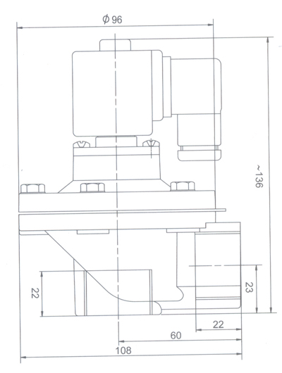 DMF-T型電磁脈沖閥為直通閥,其進(jìn)氣口之間夾角為180°(進(jìn)出口中心線(xiàn)為同一直線(xiàn)),其進(jìn)口與儲氣筒連接,出口與噴吹管連接。氣流暢通,該脈沖電磁閥能提供符合要求的清灰氣脈沖